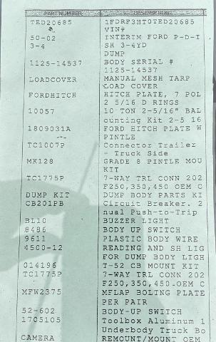 DUMP BODY PARTS KIT