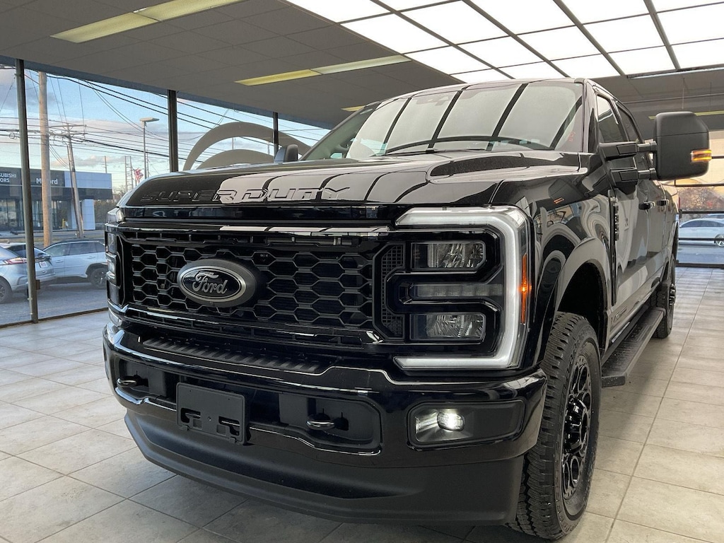 - Includes SYNC 4 with enhanced conversational voice recognition and 12-inch LCD capacitive touchscreen, wireless Apple CarPlay, wireless Android Auto, 3-month trial for SiriusXM with 360L, 1-year subscription to Ford Connectivity Package which includes connected navigation and voice assistant, B&O 640-watt sound system with 7 speakers and subwoofer, HD radio, heated front seats, electrochromic self-dimming rearview mirror, remote start system, intelligent access with push button start, remote tailgate release, body-color door handles, bright chrome grille with chrome inserts, LED box lighting, LED reflector headlamps, LED fog lamps, LED CHMSL, PowerScope power-folding power heated side view tow mirrors with LED integrated turn signals and security approach lamps, utility lighting system, blind spot information system (BLIS) with cross-traffic alert and trailer coverage, rear parking sensors, reverse brake assist, automatic high beam, and 360-degree camera.